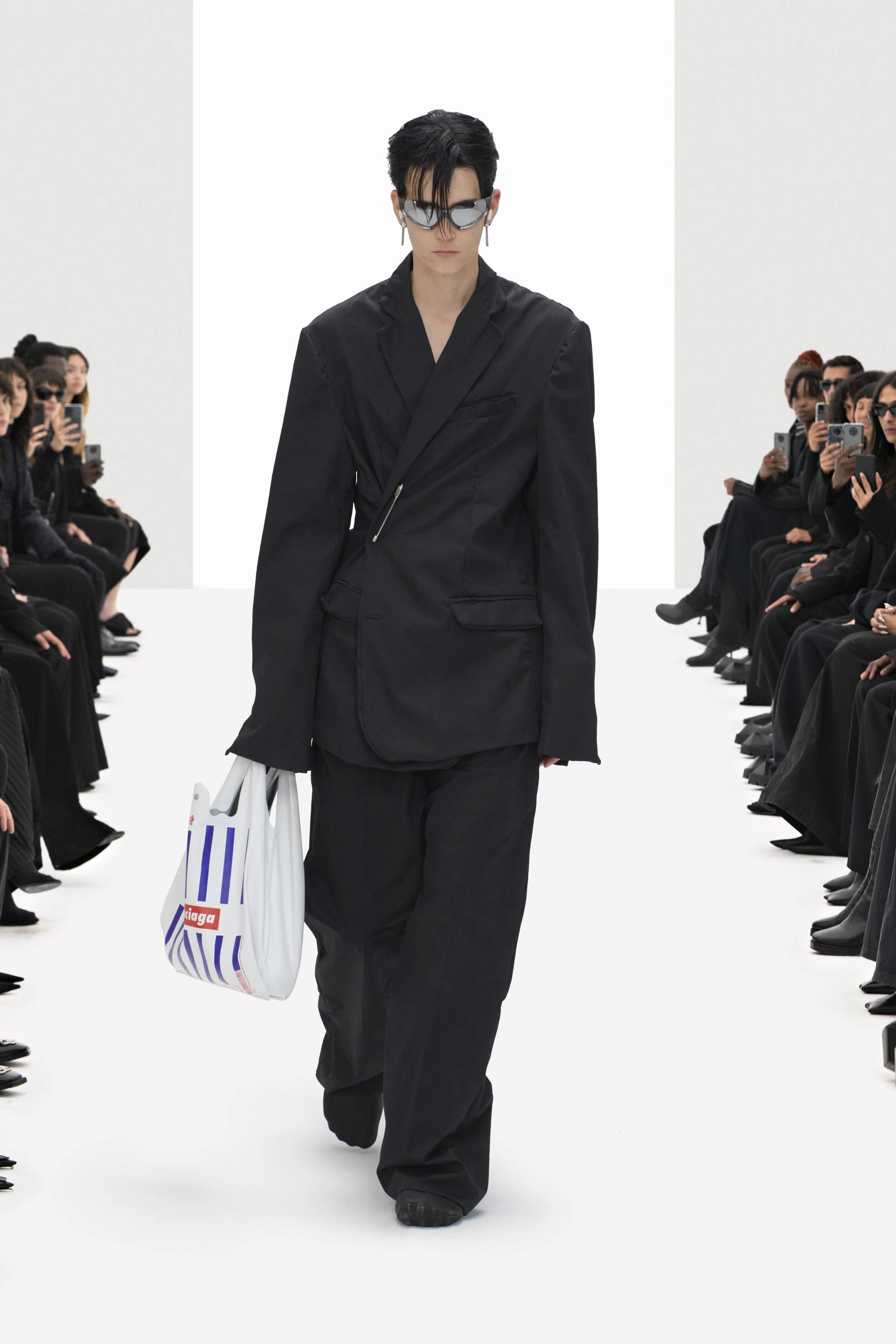 Another Balenciaga favourite is one of the new looks from their recent Spring 2022 collection (which you can read more about here). Look 6 is a wide-leg, black pantsuit pinned together at the blazer. Even though this look is quite minimalist, the way the creases of the suit follow the natural silhouette of the model's body is both elegant and sophisticated. It’s a subtle reminder of Balenciaga's master tailoring, manipulating an over-sized fabric to look structured and smooth. Price: Xpensive.
